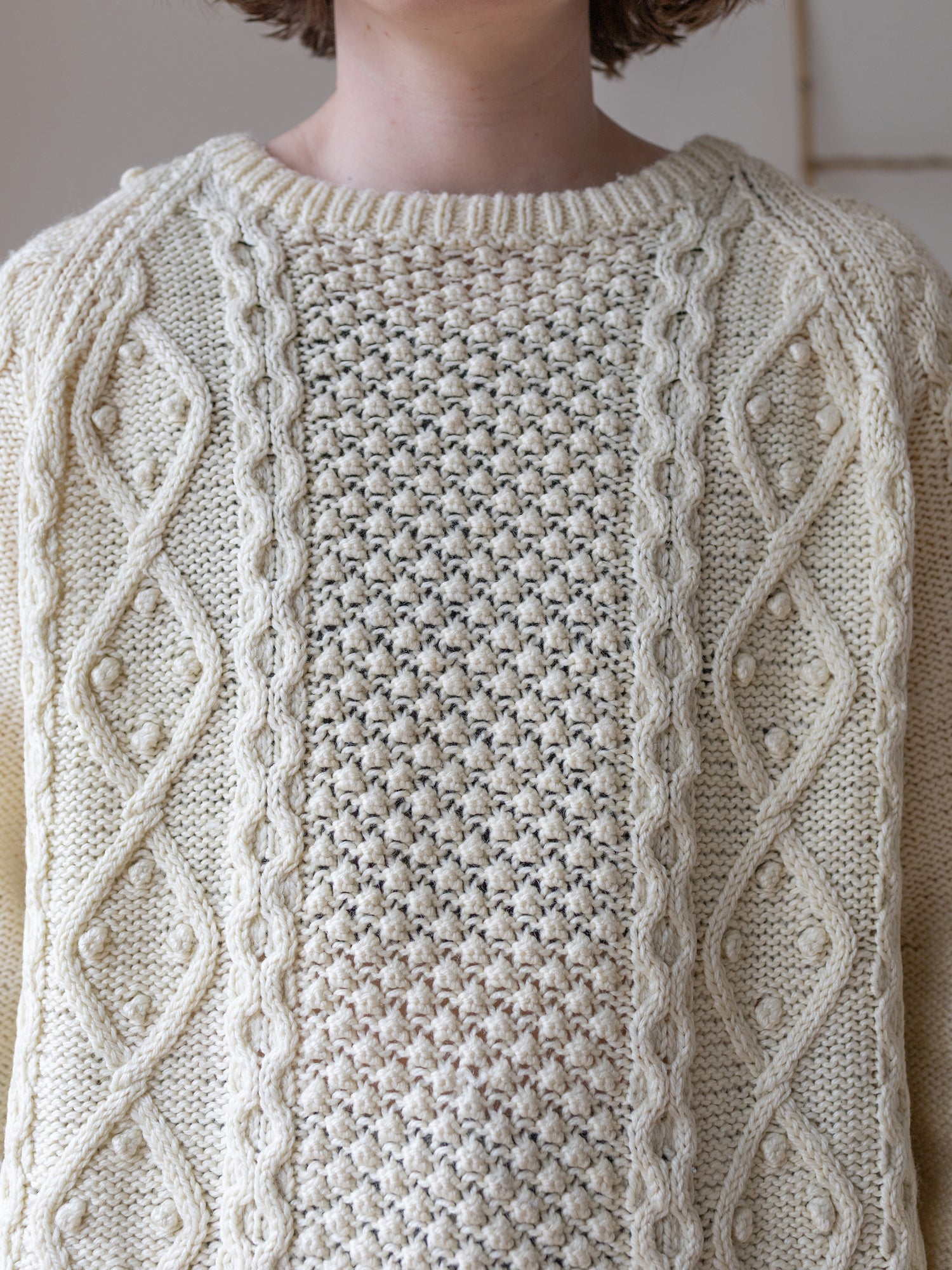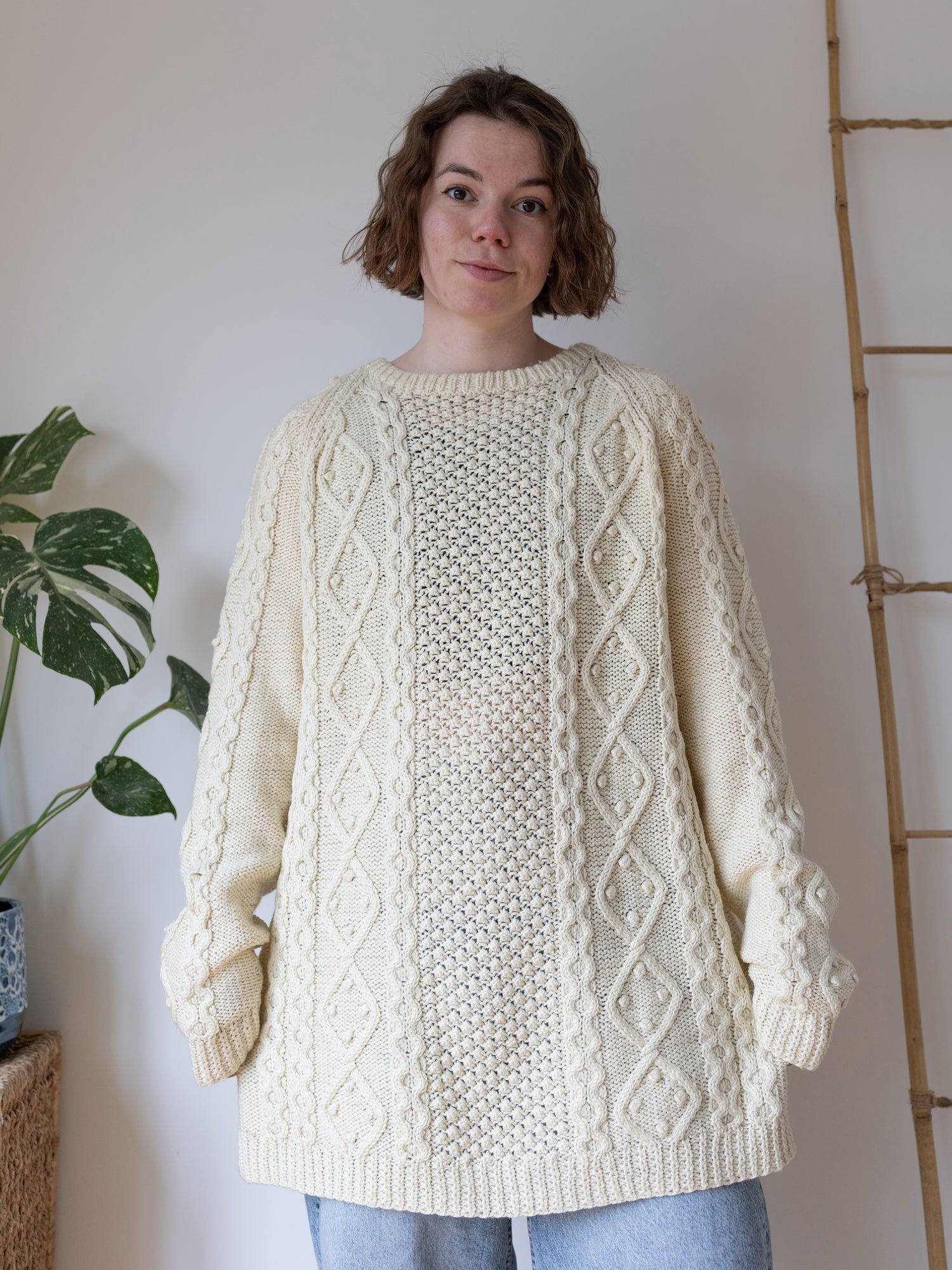 Vintage 90s Aran style knitted jumper with cable knit detailing and 3D bobble texture.