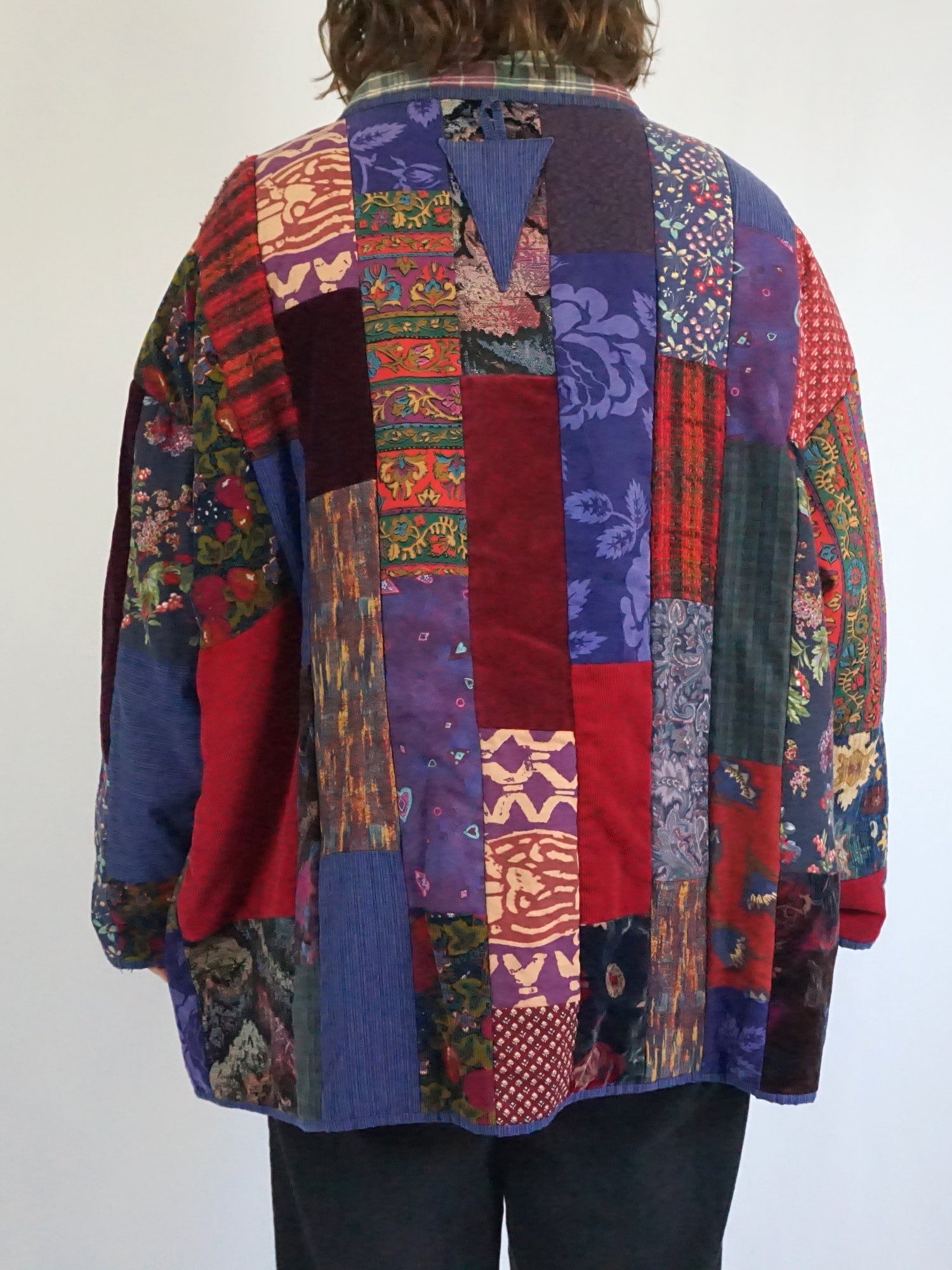 Vintage colourful patchwork quilted jacket with corduroy buttons and front pockets.