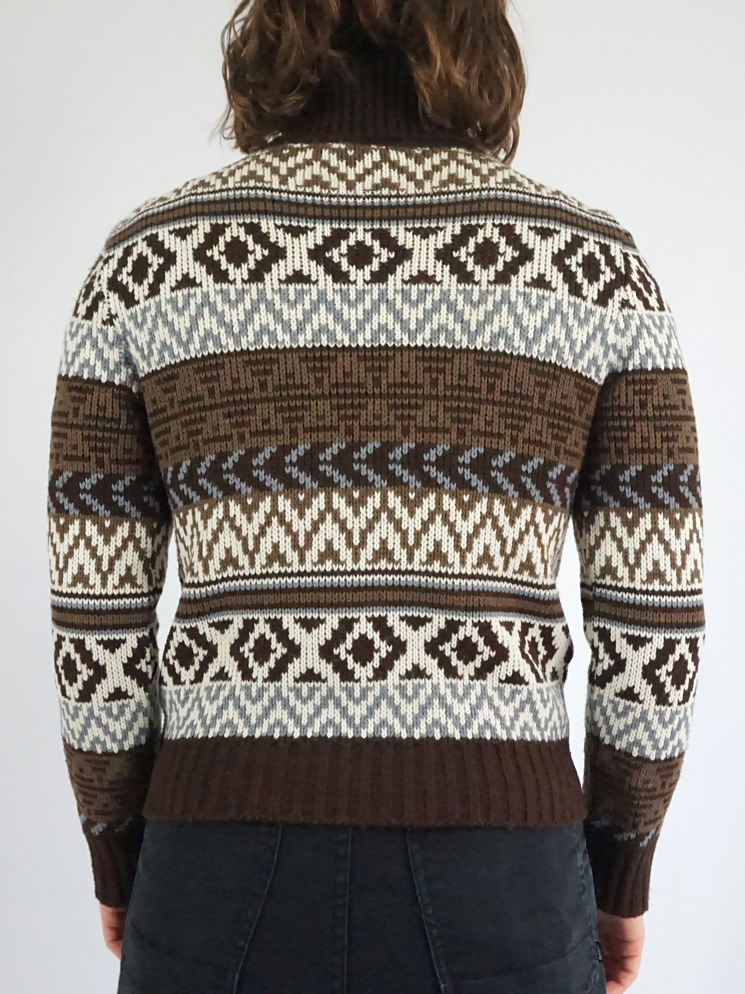 Brown Patterned Turtleneck Jumper - S