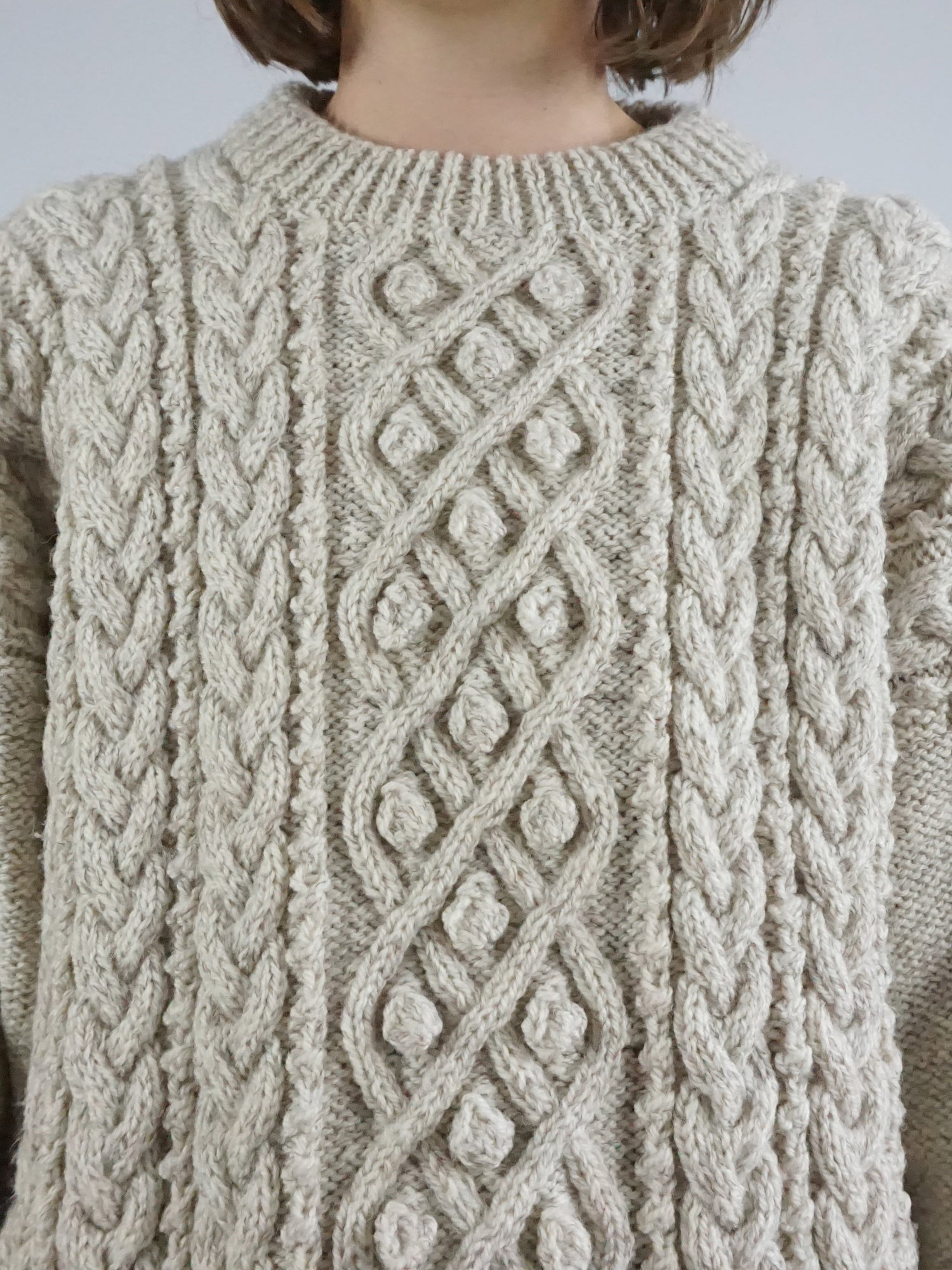 Vintage 90s cream/ oat knitted jumper with beautiful chunky aran patterning.
