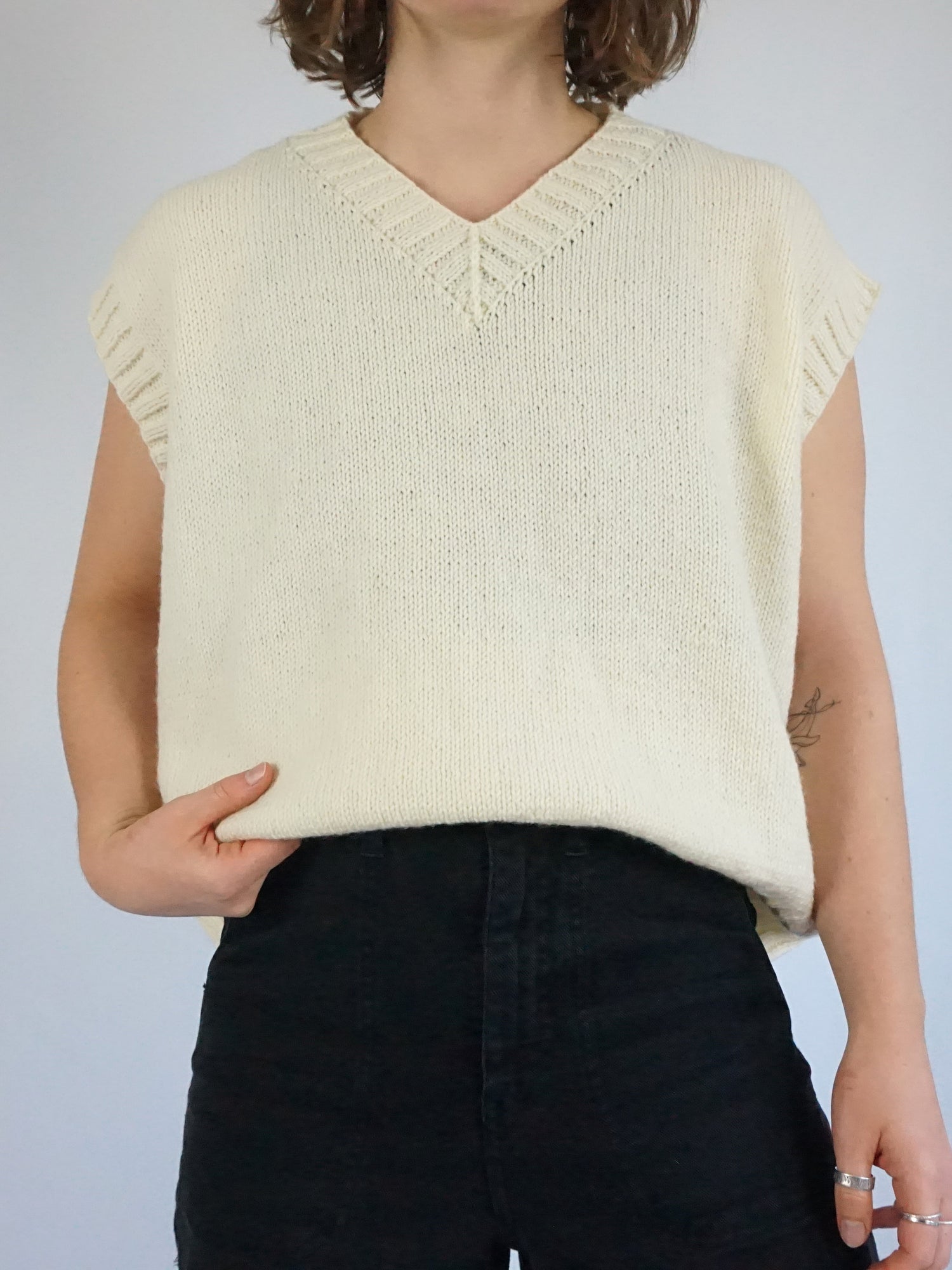 True vintage, not a reproduction. A simple classic knit vest ideal for layering or styling on its own.