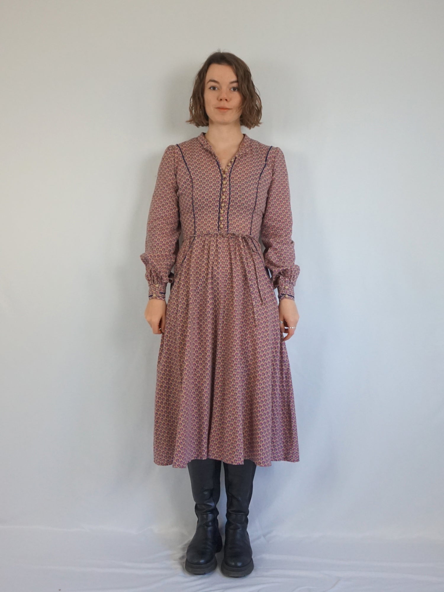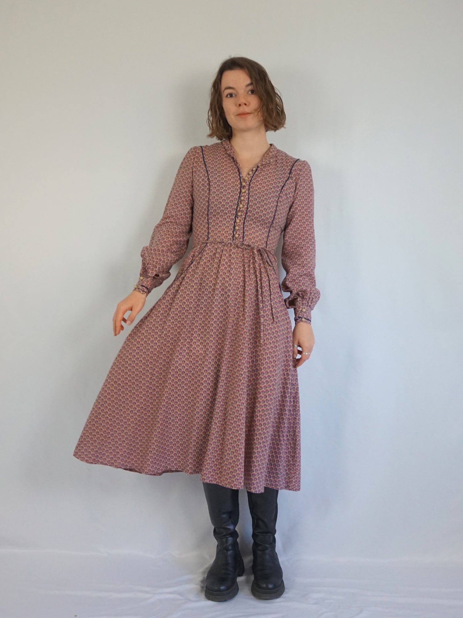 True vintage, not a reproduction. A rare Liberty print dress with a romantic silhouette and soft cotton fabric.