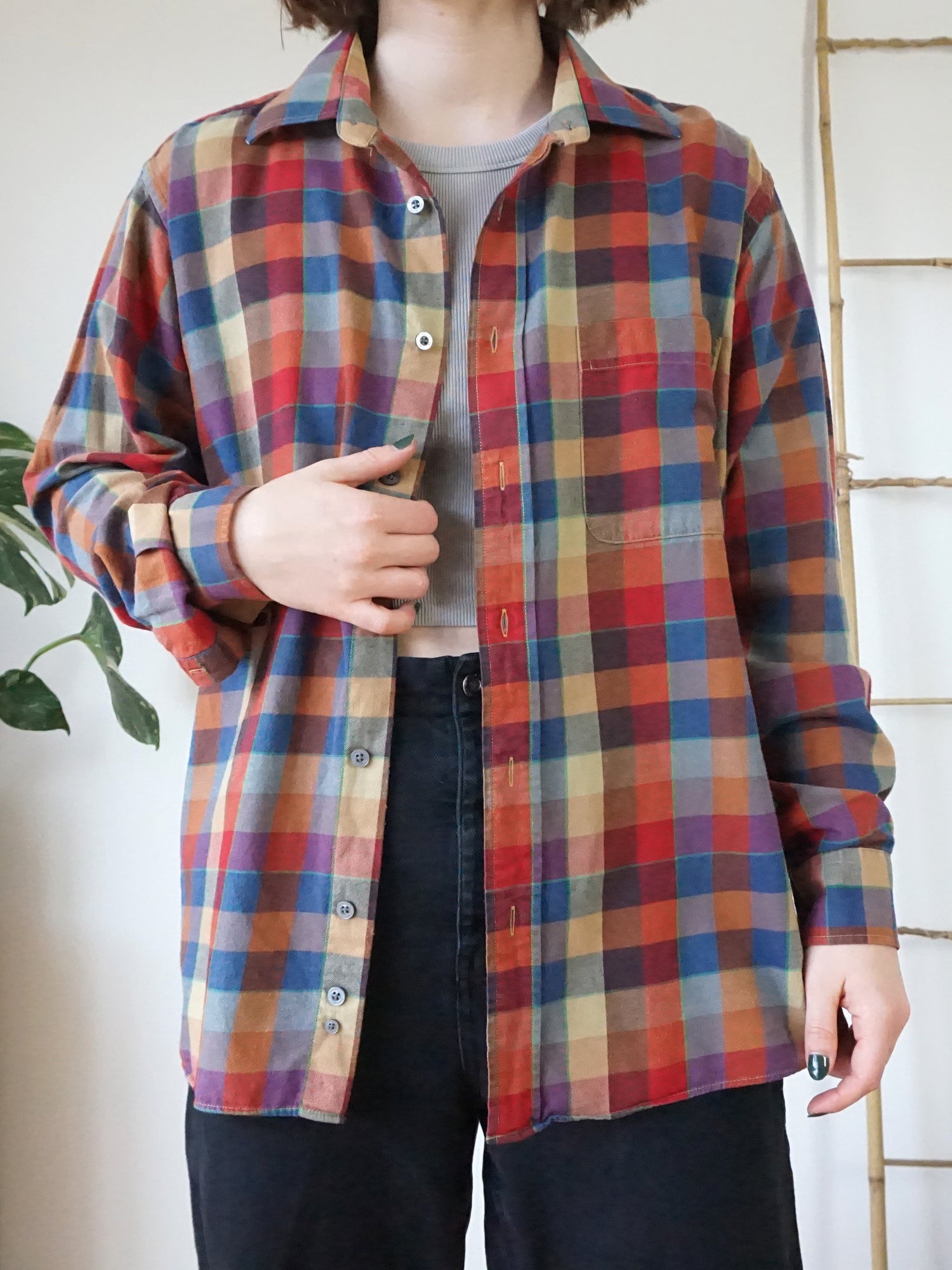 Vintage 90s colourful check wool & cotton flannel shirt with buttons down the front.