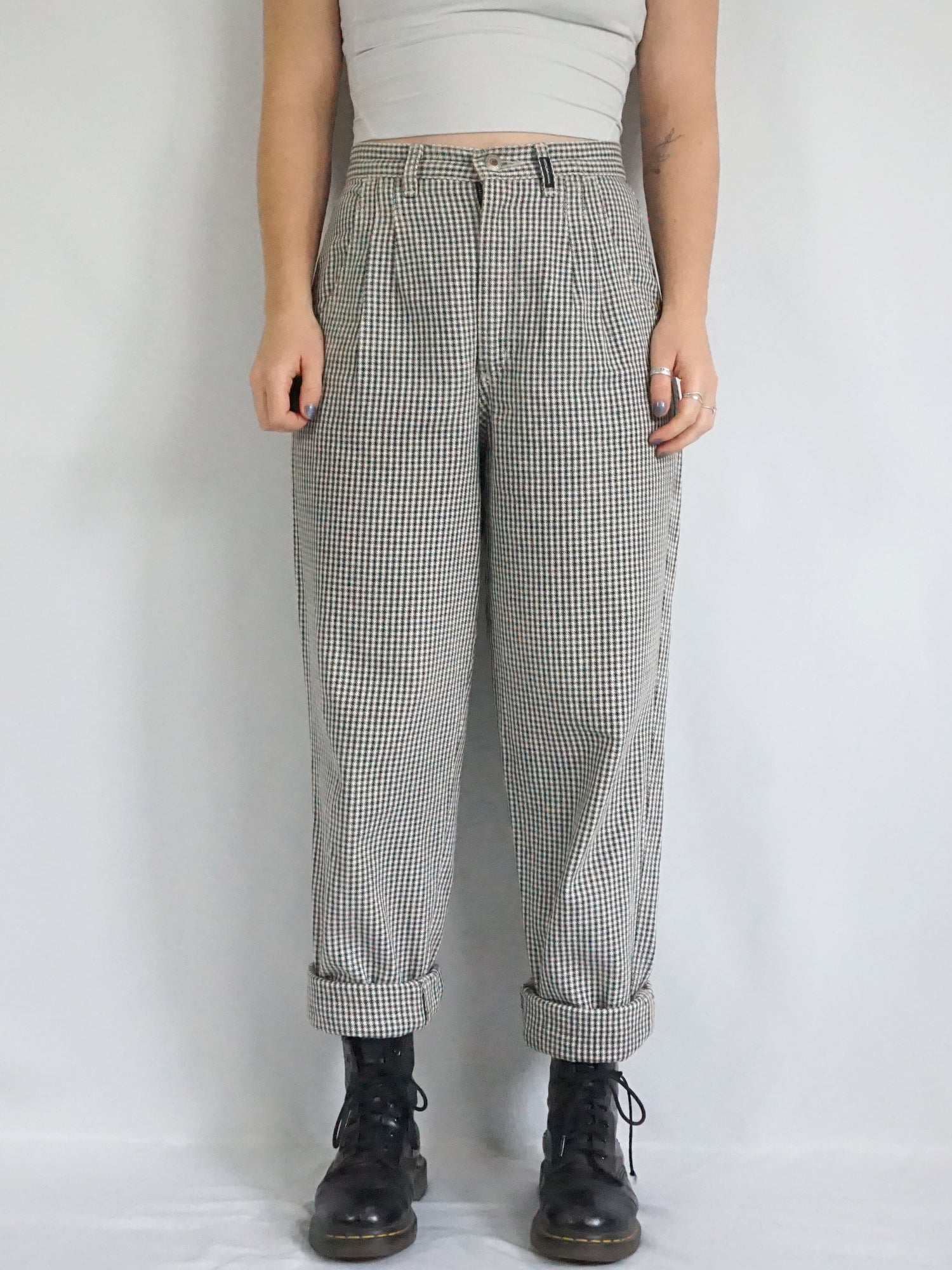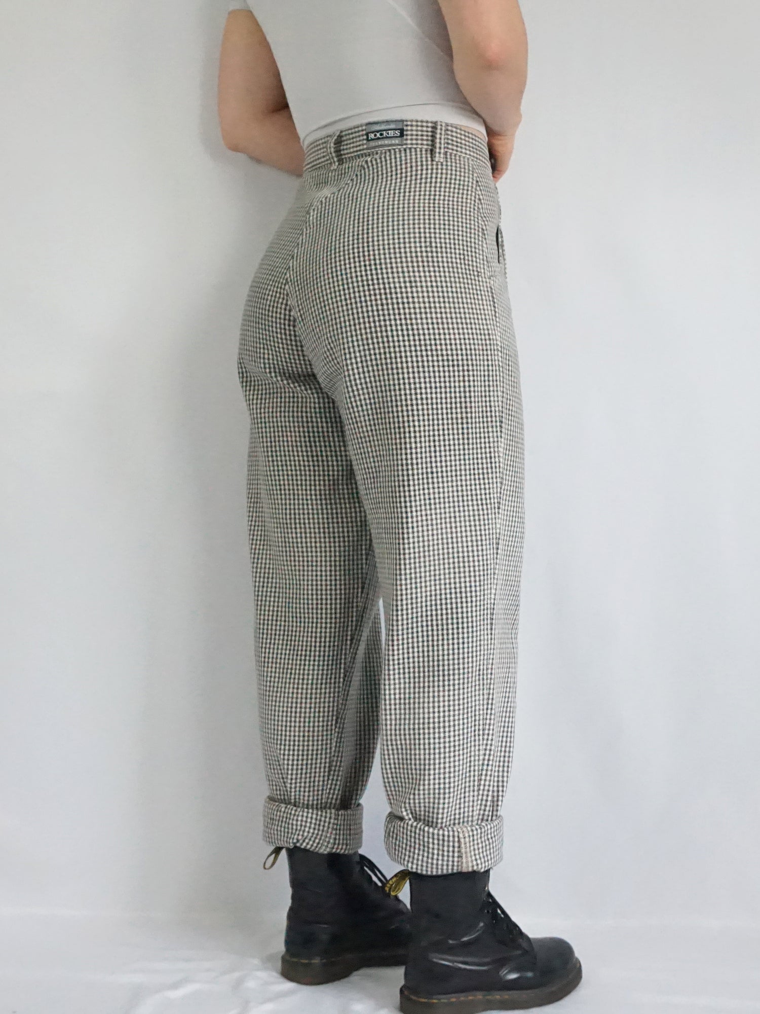 Vintage 90s Rocky Mountain black and white houndstooth mum jeans.