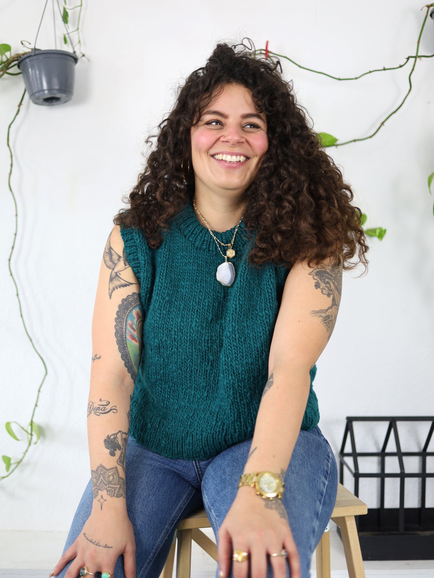 The Forest Green Vest is handcrafted in Nepal by skilled artisans using deadstock merino wool yarn. With a thick, double layered collar and a rich forest green tone, it’s designed to layer easily over shirts or dresses, or just by itself. The fit takes cues from our favourite vintage knitwear - boxy, slightly cropped, and made to be worn year after year.